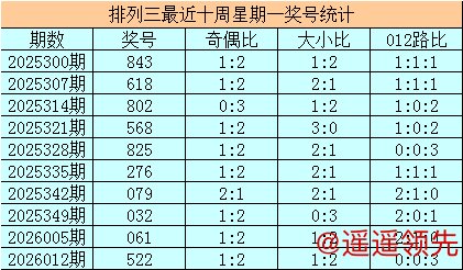 排列三十周星期一分别开出奖号:522、061、032、079、276、825、568、802、618、843,其中号码奇偶比为10:20,奇数号码走势较冷;号码大小比为15:15,大小 号码开出个数相当;号码012路比为11:5:14,1路号码走冷。