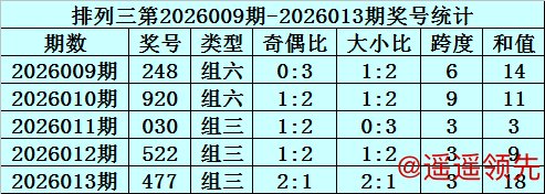 跨度分析:最近5期分别开出跨度:5、2、4、1、3,本期预计跨度走大,一码跨度参考4。